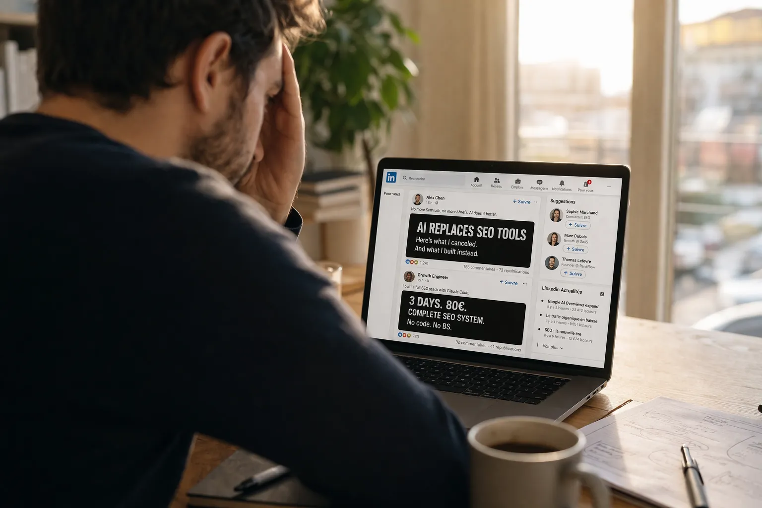 Vous l'avez forcément vu passer. Sur LinkedIn, sur X, dans les fils de discussion Reddit, le message revient en boucle depuis quelques mois : "J'ai viré Semrush, j'ai annulé Ahrefs, avec Claude Code je fais en 30 minutes ce qui me prenait une journée." Les posts les plus viraux accumulent les likes par milliers. Le ton est souvent péremptoire. Les SaaS SEO seraient finis. On pourrait se passer aisément des agences et consultants spécialisés. L'IA aurait tout changé.